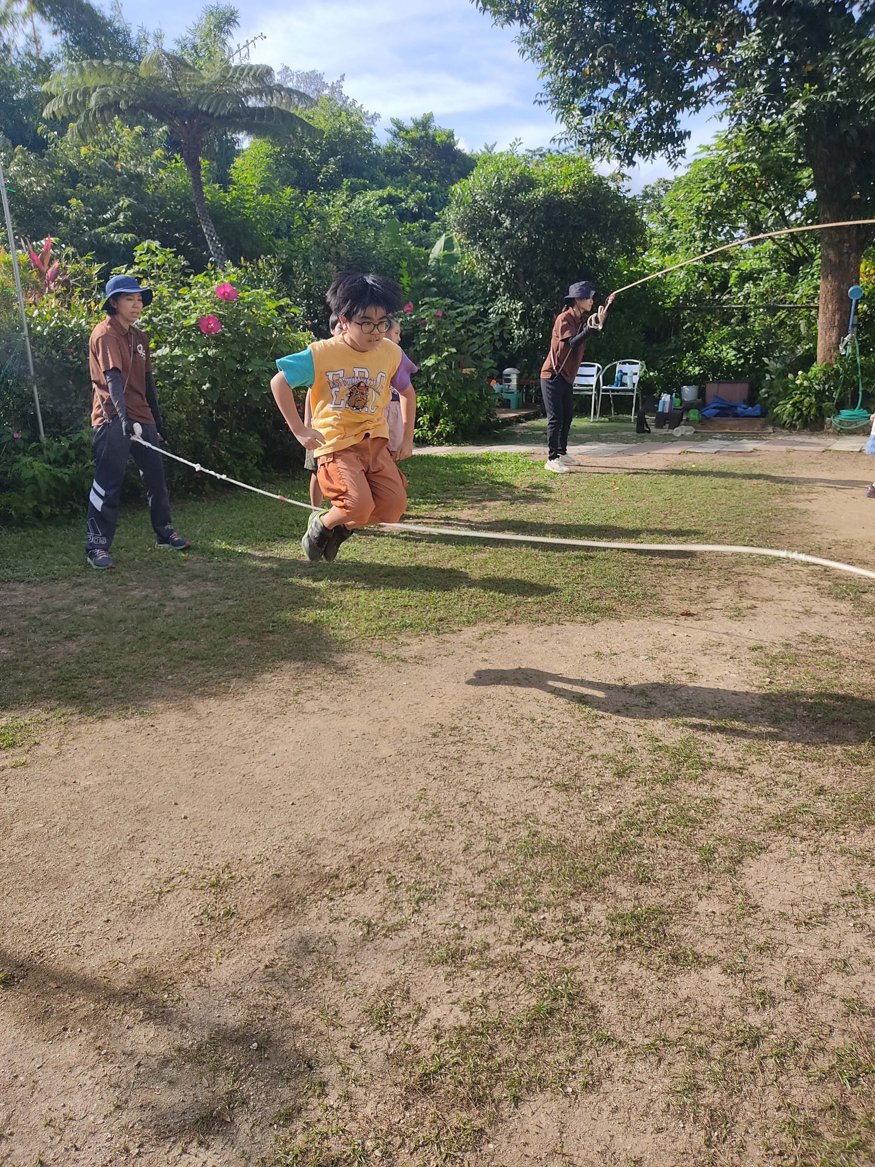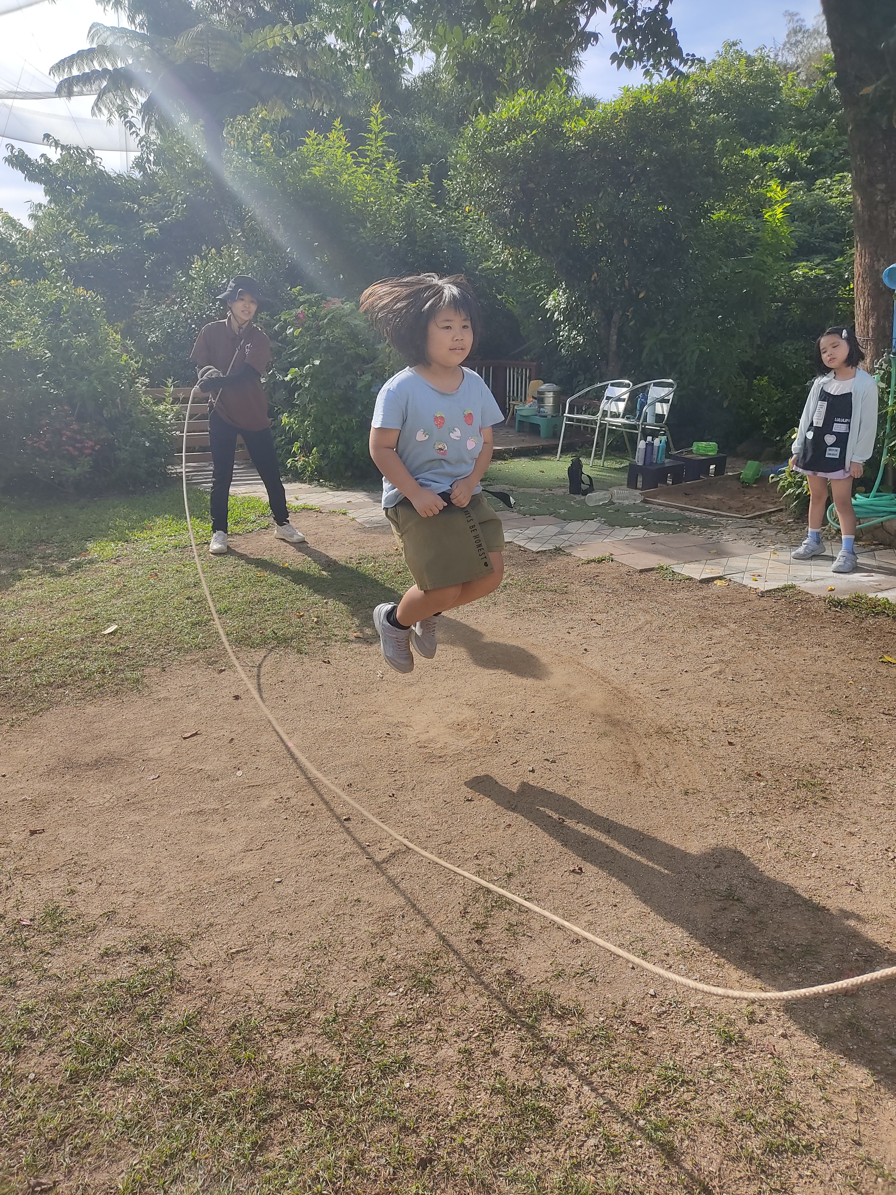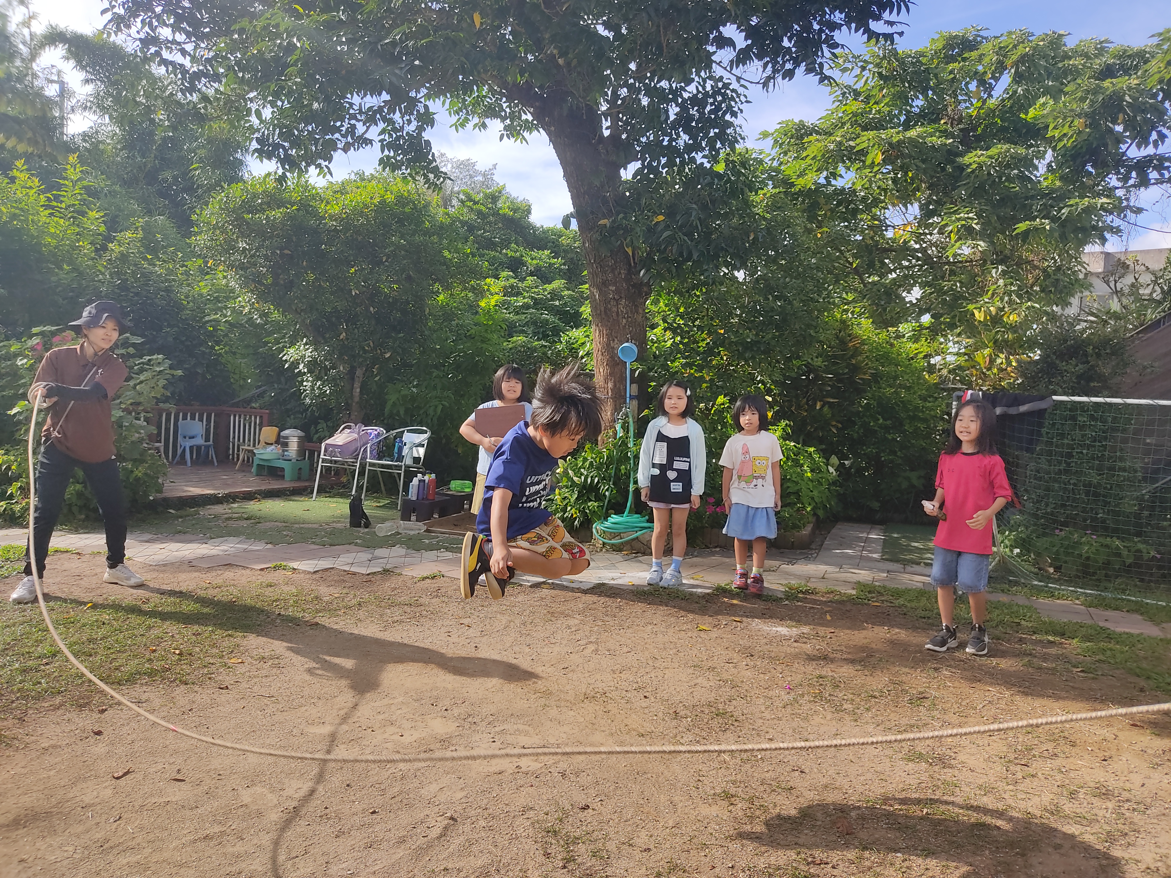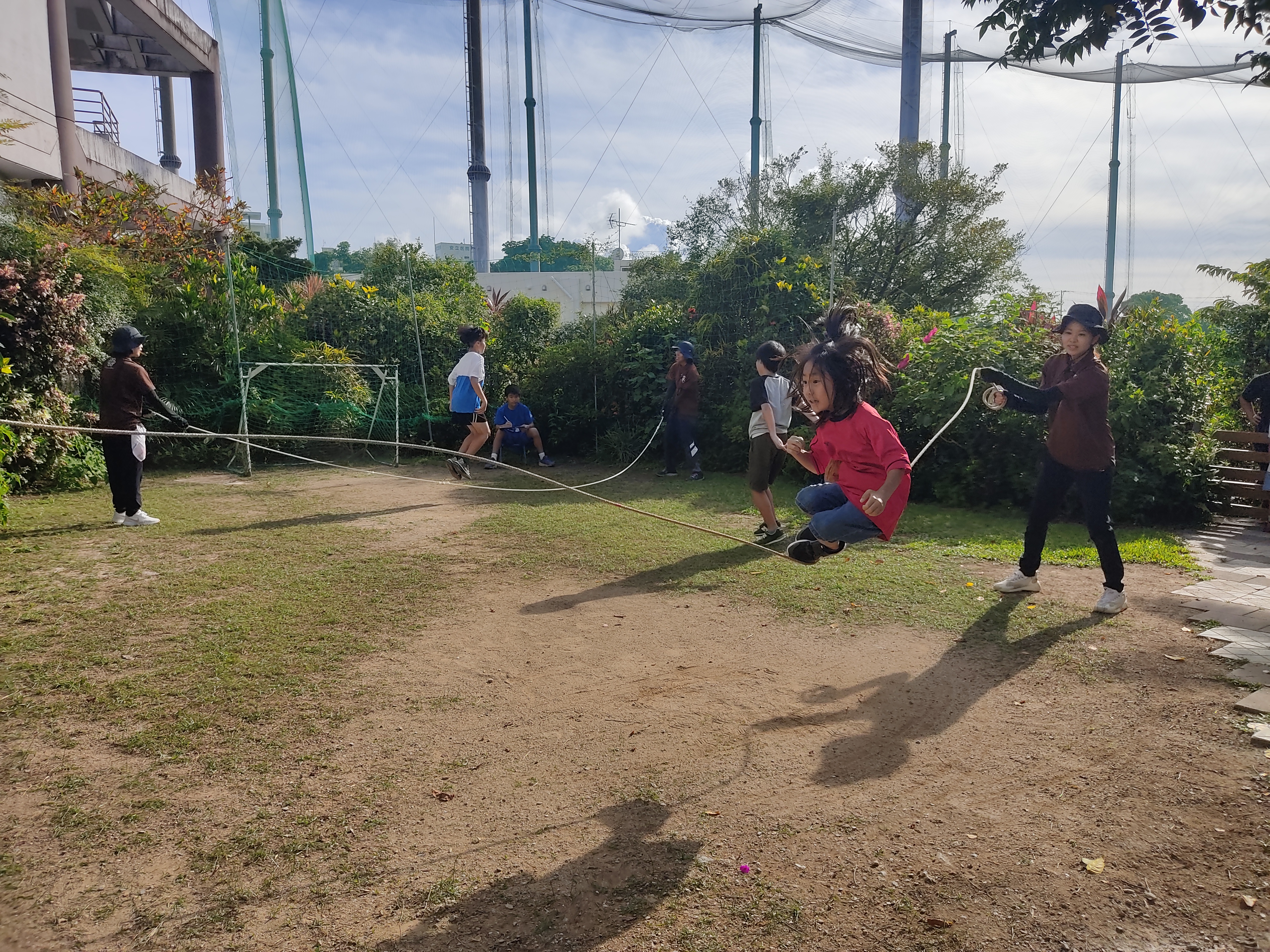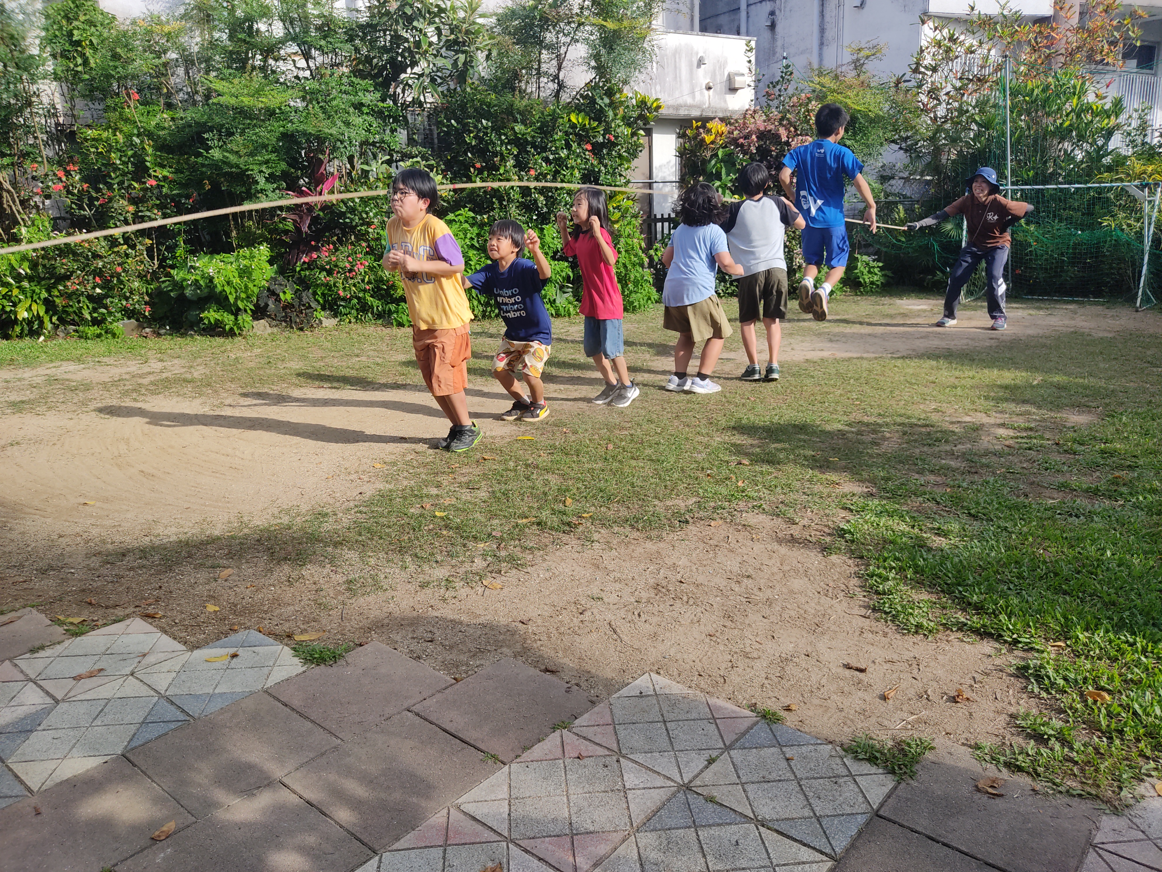 大縄跳びをしました!外がとても暑かったので、熱中症に気をつけながら楽しみました。